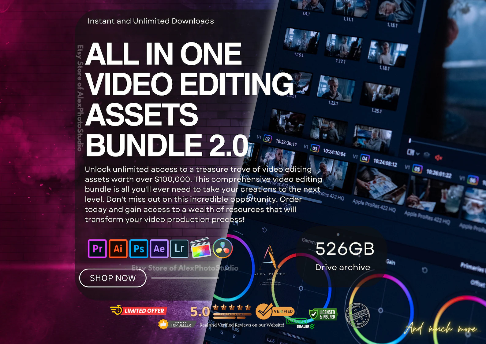 Transform your video production workflow and create stunning, professional-quality videos with this massive 500GB+ Video Editing Bundle. This all-in-one resource is perfect for filmmakers, content creators, YouTubers, and videographers who want to save time, elevate their craft, and deliver exceptional results.