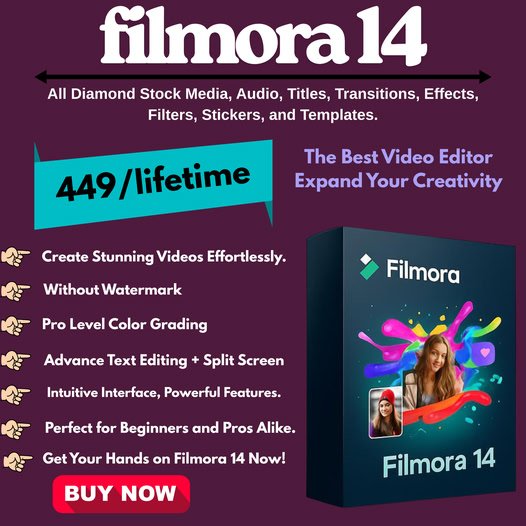 With its powerful combination of advanced AI and user-friendly features, Filmora 14 is the perfect solution for anyone looking to produce high-quality videos efficiently. This lifetime, pre-activated version provides incredible value at just ₹449, empowering you to create, innovate, and transform your content without the hassle of monthly subscriptions.